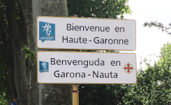 Lo Conselh departamentau de Garona Hauta qu’installa 75 panèus bilingües francés-occitan suus caminaus departamentaus, qui balhan la planvenguda a l’entrada de Garona Hauta.